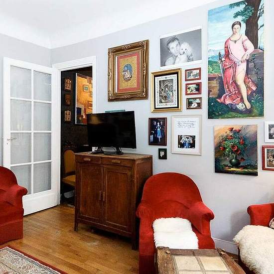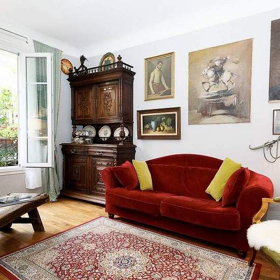 1-bedroom apartment for long-term rent at Rue Cortot in the 18th administrative district of Paris. Compact furnished accommodation for a couple on the famous Montmartre hill. Surface - 35 square meters; 1st floor of a residential building; antique furniture; parquet flooring; big windows overlooking a small garden in the courtyard. Number of tenants - up to 2 persons. Layout: a living room with a sofa, armchairs, a TV, a coffee table, a sideboard; a bedroom (a double bed, a wardrobe, a chest of drawers, bookshelves); an equipped kitchen; ...