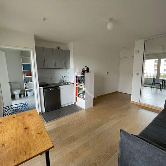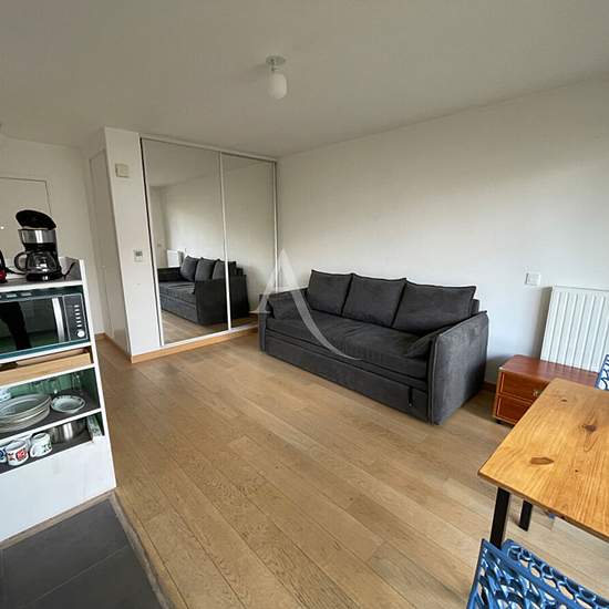 A louer, studio meublé avec balcon de 25m2 situé 21, rue de Thionville - Paris 19e dans une résidence construite en 2015 avec ascenseur comprenant une pièce de vie avec placard, un coin cuisine, une salle d'eau avec WC et un balcon. Production de chauffage et d'eau chaude collectif. Disponible immédiatement