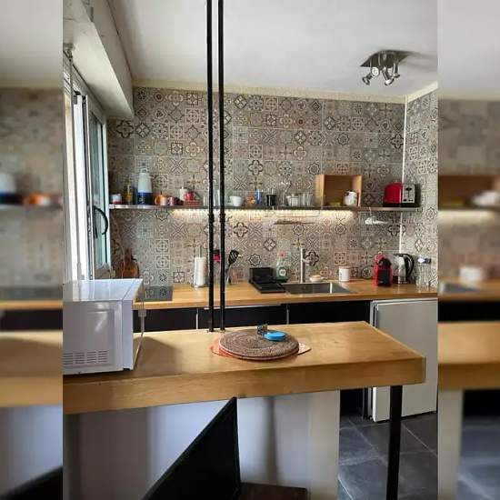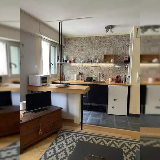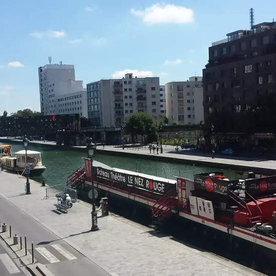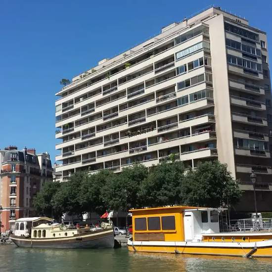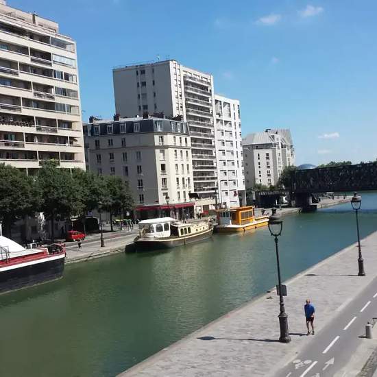 Furnished studio apartment for rent in Paris.The property is on the 1st floor of a building with an elevator. The property includes equipped kitchen and washing machine. Le complexe d’appartements est situé le long du canal de l’Ourcq. En sortant par la porte d’entrée, si vous allez à gauche le long du canal, vous vous retrouverez après dix minutes de marche dans le complexe de la Villette, il est situé dans un vaste parc vert et comprend La Cité des sciences et La cité de la Musique, qui a récemment vu l’ajout de La Philarmonie de Paris, l’...