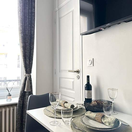 EN Nice studio at the foot of Père Lachaise and a few steps from the Place de la Nation and Place de la Bastille. An extraordinary location invites you to immerse yourself in a unique residential experience in the heart of Paris. Book your Parisian haven of peace now and enjoy the wonders of the City of Light! The Space: Why Choose Our Parisian apartment? Chic Living Space: Relax and unwind in the cozy living area, equipped with a plush 2-person sofa and a flat-screen TV for your entertainment. Sleep in Sophistication Delight in a master bed...