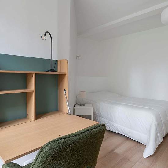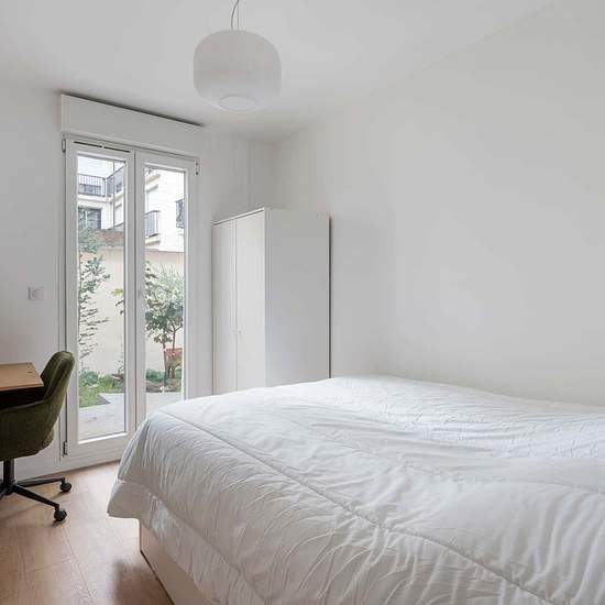 [EN] Your bedroom is fully furnished with everything you need for a comfortable stay in Paris. Enjoy your very own private space with a cozy bed, a desk and chair to work or study from home, and plenty of room to store all your essentials! Please note: Bedsheets are not provided, allowing you to personalize your space the way you like it! This shared apartment is fully furnished and equipped for a modern and comfortable feel. You will have access to several shared spaces, including a stylish kitchen and a beautiful dining and living area. Ex...