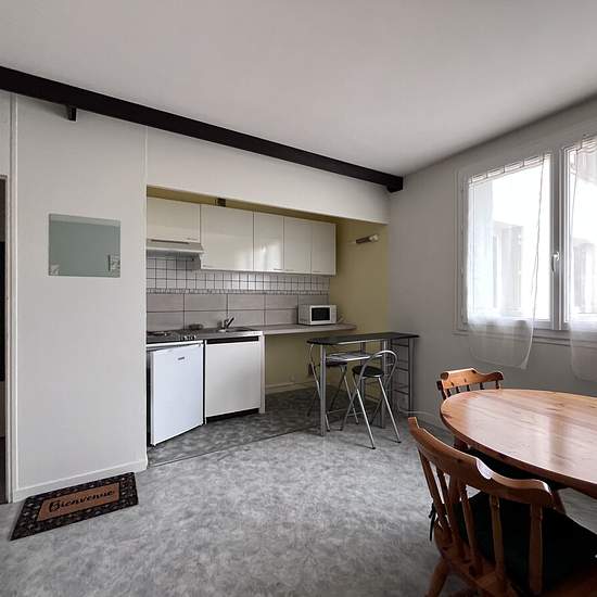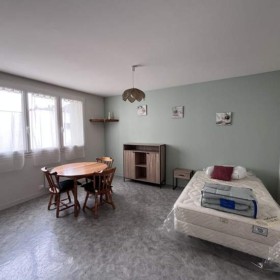 Périgueux, au sein d'une résidence sécurisée et de standing, au 1er étage avec ascenseur Grand studio meublé : entrée avec placard, pièce de vie avec lit, cuisine aménagée et équipée (frigo, plaques électriques, hotte et micro-ondes), et salle de bains avec WC. Libre de suite. L'appartement est lumineux / chauffage électrique Les charges comprennent : ascenseur, et concierge. Loyer de 410?/mois charges comprises dont 30?/mois de provision pour charges (soumis à la régularisation annuelle). Les honoraires charge locataire sont de 259.83? (soi...