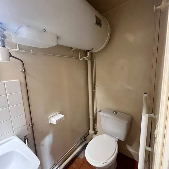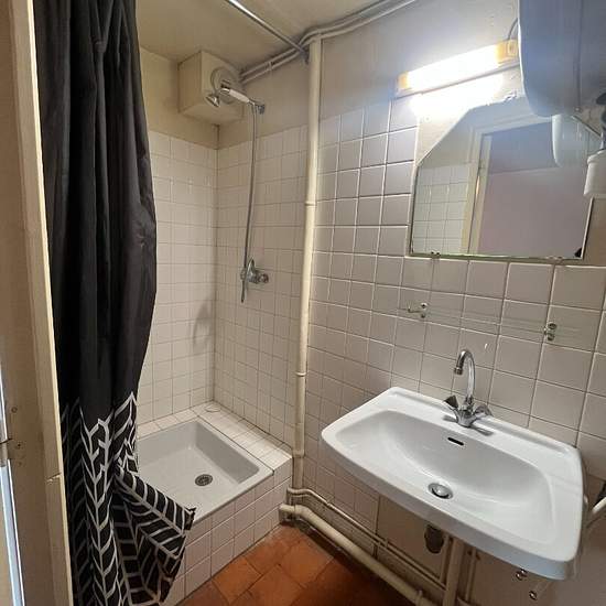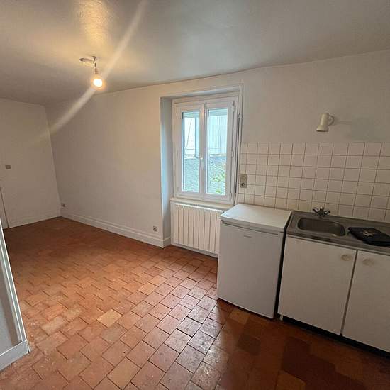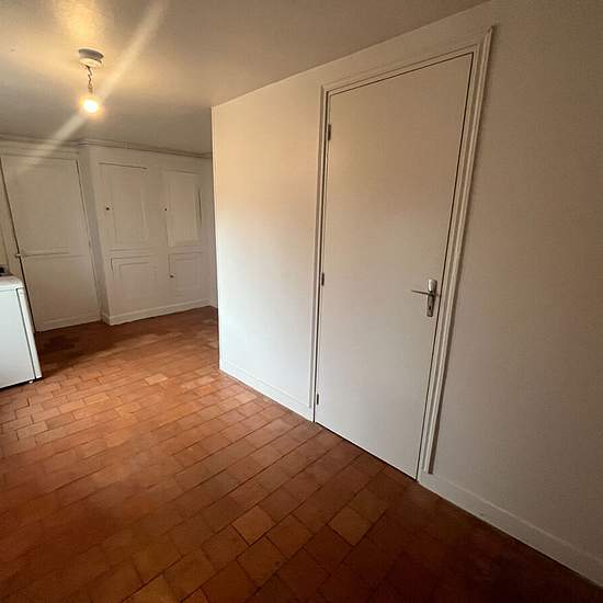 Appartement à louer. Au premier étage, studio comprenant une pièce principale avec coin cuisine et placards intégrés et une salle d'eau avec WC.