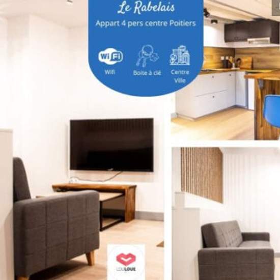 Idéalement situé à Poitiers, au bout d'une petite impasse calme et discrète, nous vous proposons ce sympathique appartement rénové récemment, décoré et pensé moderne et contemporain, pour vous offrir un séjour calme et reposant. L'appartement se compose d'une pièce à vivre avec une cuisine ouverte moderne et équipée et d'un espace pour manger. La seconde pièce rassemble salon et chambre, elle dispose d'un canapé convertible et d'une TV à écran plat pour la partie salon, et d'un lit 140 X 190 avec une penderie pour la partie nuit. Les deux es...