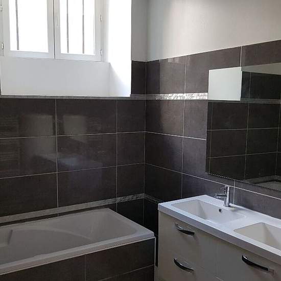 Appartement T2 , 46 m² à Pont-Saint-Esprit. Situé au premier étage , ce T2 de 46 m² rénové, comprend un séjour , une cuisine aménagée , une salle de bains , une chambre et un W.C séparé. Au rez-de-chaussée ,une cave individuelle . Loyer : 450 + 10 € de charges. Honoraires location (part locataire) = 378€ € état de lieux compris