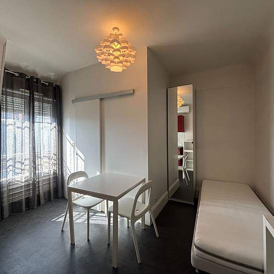En hypercentre ville, proche de toutes commodités , au 3ème étage sur cour d'un petit immeuble ancien bien rénové, un studio comprenant une pièce principale, kitchenette meublée et équipée, une salle de douche séparée avec WC. Appartement partiellement meublé. Chauffage individuel par climatisation réversible. Production d'eau chaude collective inclue dans les charges. Disponible dès 8 mars Reims - 21 Rue Thiers