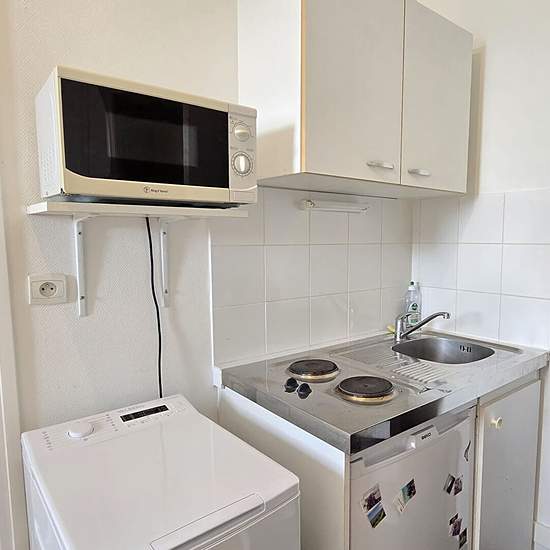 Découvrez ce charmant studio entièrement meublé idéalement situé en hyper centre de Reims, rue des Elus qui est perpendiculaire à la place du Forum, dans un immeuble au charme de l'ancien sécurisé. Ce logement, offre un cadre de vie agréable alliant authenticité et confort moderne. Le studio comprend une kitchenette pratique et fonctionnelle, ouverte sur un espace de vie lumineux, idéal pour créer un coin séjour chaleureux et convivial. Vous y trouverez également une salle de douche avec WC, une machine à laver, un lit gigogne pouvant accuei...