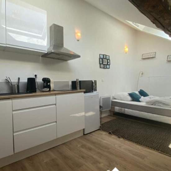 Dans un immeuble en copropriété, en fond de cour, au 2ᵉ et dernier étage, sans ascenseur. Studio mansardé entièrement meublé d'une surface habitable de 14,97 m², comprenant une cuisine aménagée et équipée ouverte sur le séjour, une salle de douche ainsi qu'un WC séparé. Chauffage individuel électrique Loyer hors charges : 450,00 € Provision pour charges : 40,00 €, comprenant l'eau, la TEOM, l'entretien et la minuterie des parties communes Honoraires d'agence : 164,67 € Dépôt de garantie : 900,00 € Les informations sur les risques auxquels ce...