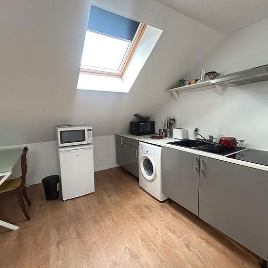 LOCATION L'ATELIER IMMO A louer, appartement meublé de 38,55 m² au sol ( 25,21m2 loi Carrez) dans une copropriété à faibles charges au dernier étage. Entièrement équipé, il comprend un espace chambre, un salon lumineux, un coin bureau idéal pour le télétravail ou les études, une cuisine aménagée avec machine à laver, ainsi qu'une salle de douche avec rangements. Clair et sans vis-à-vis, il offre un cadre de vie agréable et fonctionnel. Son emplacement est stratégique : à proximité immédiate du centre-ville, de la faculté de droit, de NEOMA e...