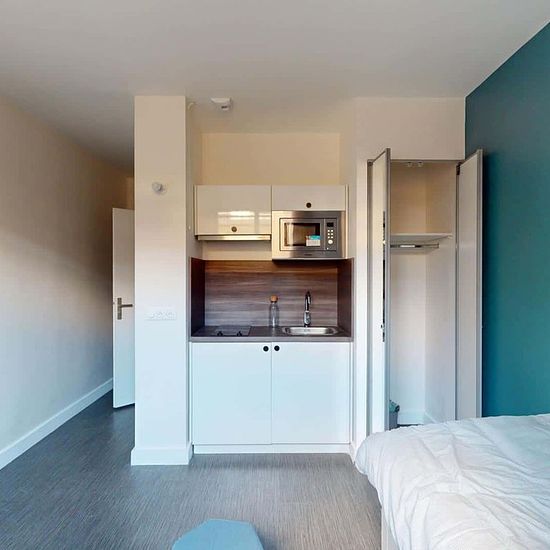 OQORO vous propose ce studio de 20,12 m², situé dans la commune de Reims au 31 Rue Du Colonel Moll. APPARTEMENT Ce studio s'ouvre sur une pièce de vie aménagée d'un lit gigogne convertible en lit deux places, d'une table basse, d'un meuble TV et d'un meuble à étagères. La cuisine ouverte est équipée d'un petit réfrigérateur, d'un micro-ondes, de plaques de cuisson avec une hotte, d'un évier ainsi que des rangements. La salle d'eau dispose d'une grande douche, d'un meuble vasque avec un miroir, d'un sèche-serviettes ainsi que d'un WC. LOCA...