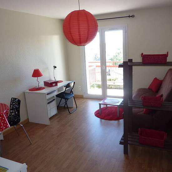 Entrée avec placard/penderie. Pièce principale, espace séjour, coin kitchenette : plaques vitrocéramique, frigo, placards, table, deux chaises. Salle d'eau avec WC, placards. Terrasse. Meubles : Bureau avec trois chaises et un meuble. Table de salon avec tapis, clic-clac, étagères et lustre. Chauffage individuel électrique - Parking commun à l'arrière du bâtiment. Prix moyens des énergies indexés sur les années 2021,2022,2023 (abonnement compris) Honoraires état des lieux: 0.00€ Les informations sur les risques auxquels ce bien est exposé so...