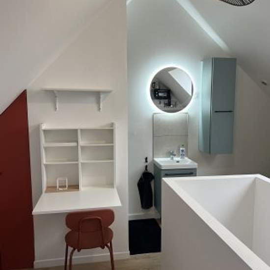 Welcome to this charming studio apartment ideally located in Roubaix on the 2nd floor of a small building. It comprises a sleeping area, a kitchenette and a shower room. → Double bed and premium bedding → Metro, parking, tram and bus nearby → Office area & wifi ideal for teleworking You can get to the centre of Lille and its train stations (Lille Europe and Lille Flandres) in just 20 minutes! Free parking is available right in front of the building. The accommodation will be carefully prepared for your arrival: professional cleaning service....