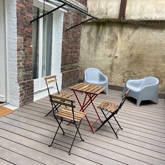 Rouen (76000) 7 rue de l'aître saint nicaise au calme, entierement refait a neuf, bel appartement de type f1 bis meuble offrant pièce principale avec coin cuisine aménagé et équipé, coin chambre, salle de douche. Belle terrasse sans vis à vis. Chauffage individuel électrique. Loyer : 530 euros / mois charges : 20 euros / mois visite sur rendez-vous uniquement .
