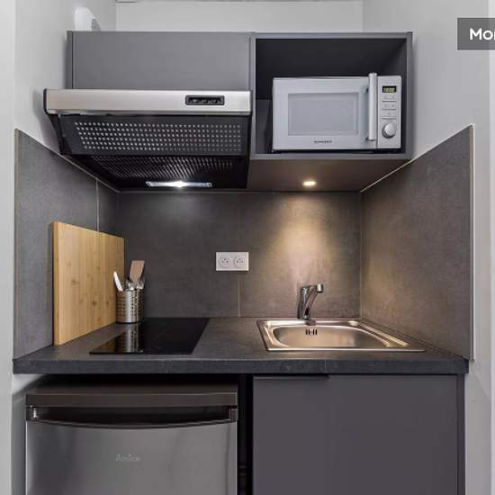 Our student residence in Rouen is located on the banks of the Seine and comprises 123 flats. The residence boasts a prime location: close to the lively city centre and its shops, and just a few minutes from public transport. Designed with students' well-being and success in mind, it offers a friendly living environment and a full range of services to simplify your daily life. More than just accommodation, you'll enjoy an unforgettable experience with the other residents. A comfortable T1 flat (19m2) designed for today's young people. - Kitch...