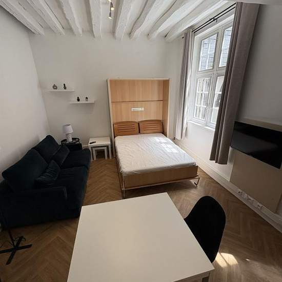 Appartement de 28 m² à louer sur Rouen A louer, studio meublé de 28 m² entièrement rénové, situé 140 rue Eau de Robec, au 1er étage d'une petite copropriété bien entretenue. Le logement donne sur cour intérieure, très calme, avec une exposition plein sud qui apporte une belle luminosité. Il se situe dans une rue piétonne, au cœur d'un quartier agréable, à proximité immédiate des commerces, transports et commodités. Le studio comprend : - Une pièce principale meublée avec cuisine équipée : four, plaques, réfrigérateur, hotte, machine à café, ...