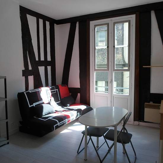 Le Cabinet AIC vous propose à la location, Rue du Gros Horloge à ROUEN, un studio meublé au 2ème étage sans ascenseur comprenant : une entrée avec placard de rangement, un coin cuisine équipée (2 plaques électriques, un réfrigérateur, un four à micro-ondes) et aménagée, un séjour avec canapé convertible, une table et 2 chaises), une salle de douches et wc. Disponible début janvier 2026 Chauffage individuel électrique Eau chaude individuelle électrique Eau froide collective avec compteur décomptant Les informations sur les risques auxquels ce...