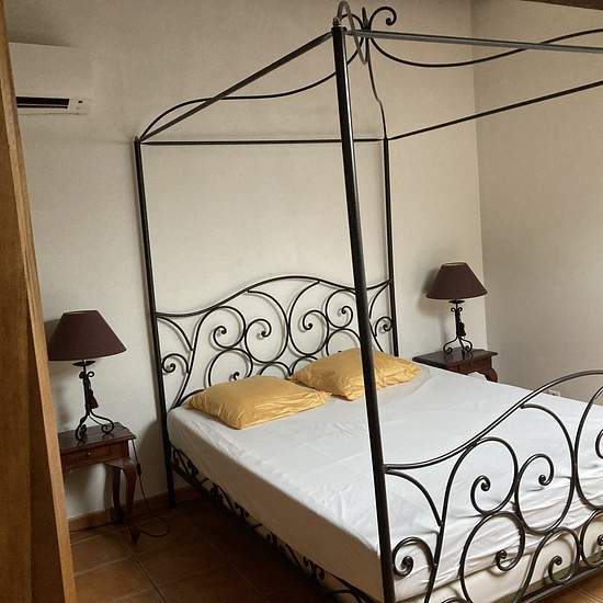 ROUSSET au sein d'un mas provençal, propriété au pied de la Sainte Victoire, sécurisée, Charmant T2 meublé, très coquet de 33.34 m2 environ, au 1er étage sans ascenseur. L'appartement est lumineux. Un espace coin - cuisine aménagé et équipé. Une salle d'eau douche italienne wc. Une chambre à l'étage. L'appartement est climatisé. Double vitrage. Eau, électricité comprise. Wifi à disposition gracieuse. En commun, Machine à laver (laverie service payant) Parking collectif. Possibilité de différents forfaits : pour un accès à la piscine, forfait...