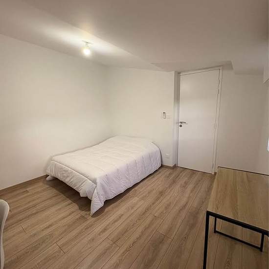 Chambre de collocation meublée avec salle de bain et toilette dans une collocation, trois chambres et une cuisine équipée four lave-vaisselle, micro-ondes frigo, plaque de cuisson machine à laver et sèche-linge et une table six personnes