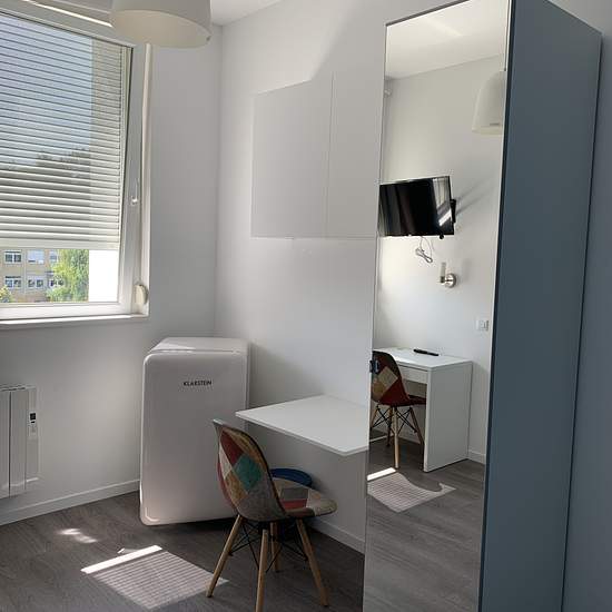 4F RUE DE L'ANCIEN HOPITAL : AU 3ème ETAGE + ASCENSEUR, CHAMBRE MEUBLEE No5 RECEMMENT RENOVEE AVEC SALLE D'EAU + WC. CUISINE COMMUNE. LAVERIE COMMUNE. Honoraires plafonnés à 19 m2 x 11 = 209 EUR LOYER MENSUEL 335 EUR + FORFAIT CHARGES 110 EUR (tout compris : chauffage, eau, EDF appt + communs, entretien communs, ascenseur, ADSL par réseau WIFI, taxe OM)