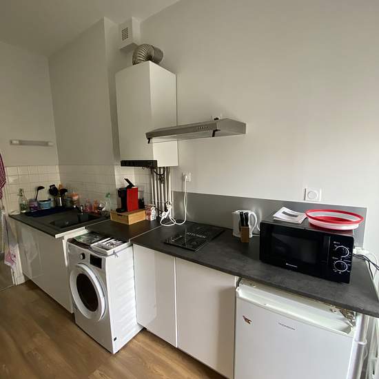 Un appartement de type 1 Bis meublé comprenant: une pièce de vie avec canapé, commode, lit, lave-linge, une cuisine aménagée et équipée, une salle de bains, un wc.