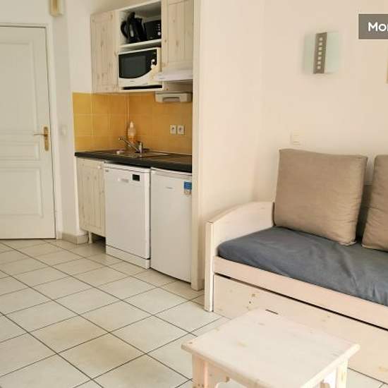 Non-smoking accommodation Living room with pull-out sofa (sleeps 2). Open cabin area with 1 double bed. Equipped kitchenette (fridge, ceramic hob, microwave, filter coffee machine, dishwasher). Bathroom with WC. Balcony terrace or garden level. EQUIPMENT: Wifi, Television, Crockery, Sheets, Duvet / Blanket, Towels, Heating, Bathroom with bathtub, Swimming pool access on opening hours and period, Lift, Outdoor and underground parking, Smoke detector, clothes line. AVAILABLE: Iron, Hair dryer by the day IN ADDITION: Shared washing machine and ...