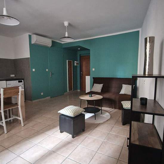 À Solliès-Pont, louez ce spacieux studio en Rdc entièrement meublé. Il se compose d'une belle pièce à vivre avec coin cuisine équipée (plaque et hotte, frigo et four), double vitrage, climatisation; d'une salle d'eau et d'un petit cellier. Ce studio est proposé pour la 1ere fois meublé, donc mobilier neuf : banquette BZ, meuble TV, étagère, poufs, table de salon, table à manger et ses 4 chaises, frigo, lave linge et four en cours de livraison. Prise Fibre Loyer : 510.00 EUR - Dépôt de garantie : 1020 EUR Honoraires de location : 270.00 EUR T...