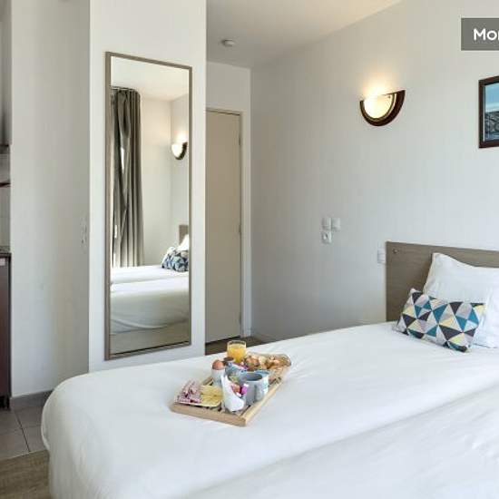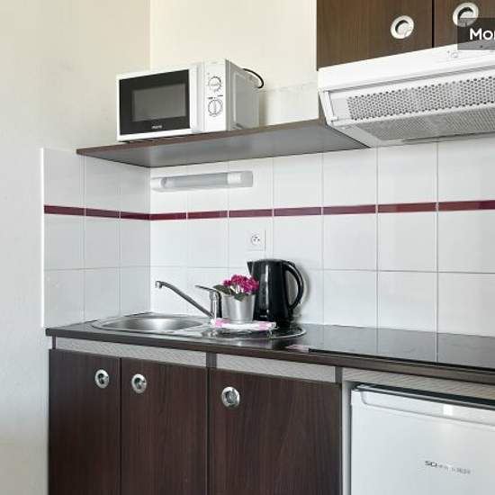 The 16m studio is ideal for two people. It has two single beds, a desk, an LCD TV, a fully equipped kitchen (fridge, microwave, hob, coffee maker, crockery and cooking utensils), a balcony and a bathroom with shower and WC. All flats are soundproofed and have free Wi-Fi access. Services included in rent & charges: Water Electricity Heating Internet The security deposit of 990 must be paid, before the keys are handed over, by credit card (cashed).
