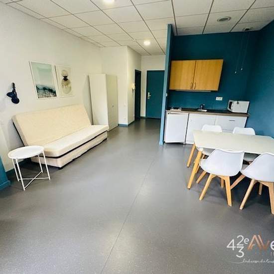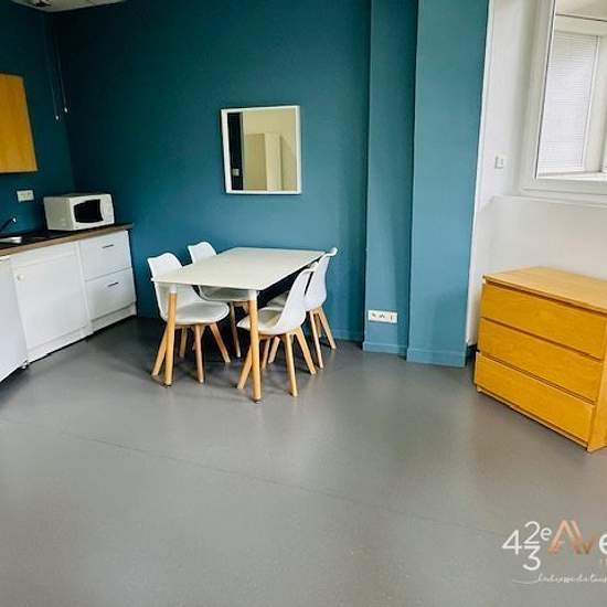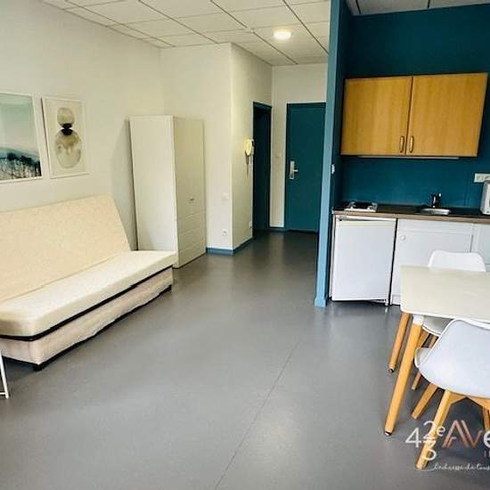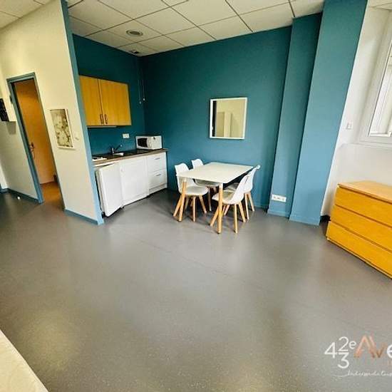 Quartier Bellevue/Solaure, au 94 rue Gabriel Péri et 105 rue de la Jomayère à St Etienne Résidence Résibelle. Mignon Studio Meublé d'environ 33.10m2 situé au 1er étage avec ascenseur, composé d'une entrée, une pièce à vivre avec coin cuisine, une salle d'eau et un wc, chauffage électrique et production d'eau chaude par cumulus. Loyer 420?/mois Provision sur charges 75?/mois (inclus entretien immeuble, eau froide et électricité) Dépôt de garantie 840? Frais d'agence : Visite, Dossier et Bail 185.36? TTC et Frais d'état des lieux 99.3? TTC. Po...