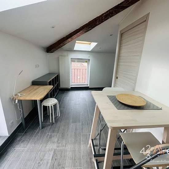 Quartier de la Richelandière/La Montat au 8 rue du Chalet à St Etienne, Mignon Studio meublé d'environ 22.78m2 situé au 3ème et dernier étage sans ascenseur, composé d'une pièce à vivre avec coin cuisine, une salle d'eau avec wc, chauffage individuel électrique. Loyer 370?/mois Provision sur charges 30?/mois (inclus prov. pour eau froide et entretien immeuble) Dépôt de garantie 740? Frais d'agence : Visite, Dossier et Bail 182.24? TTC et Frais d'état des lieux 68.34? TTC. Agence 42ème Avenue 1 Cours Victor Hugo 42000 Saint Etienne 'Les infor...