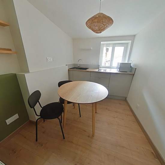 Ref annonce: LA6637 STUDIO MEUBLE neuf de 19,34 m² env. situé au 2ème étage sur cour d'un petit immeuble avec parties communes rénovées situé 27 rue Pierre Bérard ST ETIENNE CENTRE, à proximité immédiate de toutes commodités (commerces, transports) et du lycée Claude Fauriel, idéal étudiant. Entrée avec placard aménagé, coin cuisine équipé (plaques 2 feux, MO), chambre avec canapé/lit 2P, salle d'eau avec douche, meuble vasque et wc, chauff ind élec neuf, double vitrage PVC. Disponible fin septembre. Classe énergie D (DPE D en date du 28/06/...
