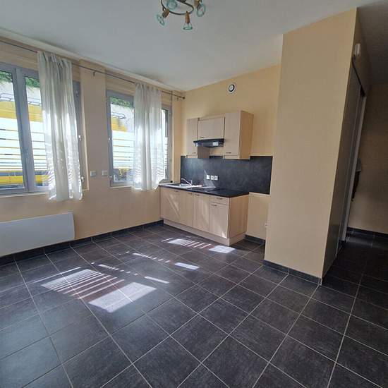 SAINT-ETIENNE /ROND POINT / PARC DE L'EUROPE 6 Bd A. de Fraissinette-Secteur calme- studio de 23.46 m² en rdc + parking inclus- Très bon état- coin cuisine avec plaque vitrocéramique/hotte , cuisine meublée-Pas de chambre séparée-Salle d'eau avec douche, wc, meuble vasque- volet roulant électrique - interphone-Chauffage individuel electrique- 1 place de parking privé incluse- Loyer 300 euros + 25 euros charges