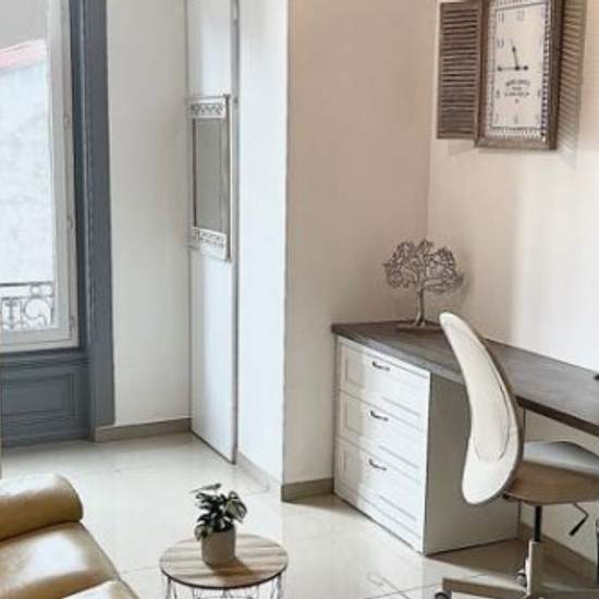 Le charme de l'ancien ( hauteur sous plafond 3, 60 m, le cachet du neuf: Sol marbré 60x60 réfléchissant la lumière, totalement rénové et meublé à neuf, aménagement intérieur et décoration soignée vous bénéficiez d'un studio de 28 m² baigné de lumière ( 3 étage) avec ses grandes fenêtres donnant sur une cour calme et ensoleillée, une vue dominante Une véritable cuisine tout équipé: Frigo, four, micro-onde, cafetière, plaques de cuisson induction, lave vaisselle ... Salon avec canapé 2 place, table basse et grand écran TV 140 ( abonnement Netf...