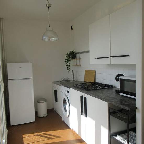 Appartement de 34 m² à louer sur Saint-Étienne Quartier résidentiel de Villeboeuf – Fauriel, au 1 rue Josephin Souraly à Saint-Etienne Beau studio meublé de 34,5 m² dont balcon Vue panoramique sur St Etienne (jardin des plantes / opéra) Calme absolu, sans vis à vis, cadre de verdure à proximité du centre-ville. Pièce à vivre baignée de lumière avec cuisine en partie ouverte Mobilier impeccable (clic clac avec matelas Dunlopillo épais) Aménagé par une décoratrice d'intérieur Cuisine équipée, électroménager neuf (réfrigérateur 200L / congélate...