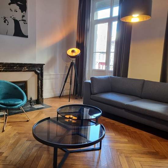 Découvrez jean-jaurès, un appartement chaleureux et fraîchement rénové de 110.7 m² situé au 1èr étage d'un immeuble en plein centre-ville de saint-etienne. - une grande pièce à vivre commune (double canapé, table-basse, tv avec meuble¿) - une cuisine équipée (réfrigérateur-congélateur, micro-ondes, four, lave-vaisselle, lave-linge) - 2 salles d¿eau communes - 2 wc indépendants - 1 chambre avec salle d¿eau privative - 5 chambres équipées (lit double, tables de chevet, lampe de chevet, placard de rangement, bureau, lampe de bureau) l'apparteme...