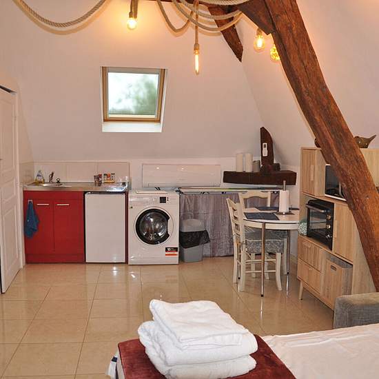 Centre bourg, studio au 1er étage entièrement meublé avec goût. Chauffage par climatisation réversible. Surface habitable : 18 m². DISPONIBLE
