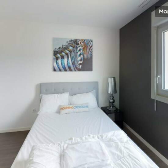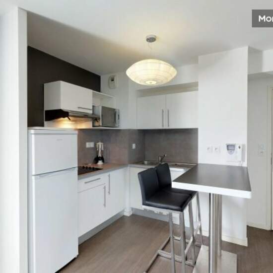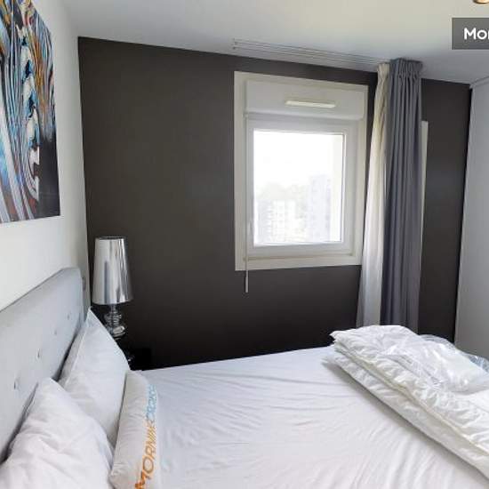 This flat is located in a secure residence just off the St Herblain tramway, next to the Pigier school. A residence manager and a security guard will be on hand for your peace of mind. This is a T2Bis flat: the kitchen is fully equipped and you have your own living area (lounge + dining room) with a bedroom and bathroom. The bedroom has a desk and a 140 cm bed. The kitchen is fully equipped with all utensils. A bathroom with shower is adjacent to the bedroom. The flat has free Wi-Fi access. Bed linen is provided and changed at your convenien...