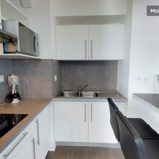 This flat is located in a secure residence just off the St Herblain tramway, next to the Pigier school. A residence manager and a security guard will be on hand for your peace of mind. This is a T2Bis flat: the kitchen is fully equipped and you have your own living area (lounge + dining room) with a bedroom and bathroom. The bedroom has a desk and a 140 cm bed. The kitchen is fully equipped with all utensils. A bathroom with shower is adjacent to the bedroom. The flat has free Wi-Fi access. Bed linen is provided and changed at your convenien...