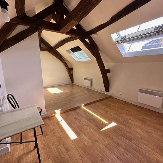 Dans Petit Immeuble, Studio de caractère de 17,54m2 (24,86m2 au sol) comprenant : Entrée, coin cuisine équipée , piéce principale, salle de bains, WC. Chauffage individuel éléctrique. Possibilité en Meublé ( moyennant supplément de loyer) Libre le 10 Mars 2026.