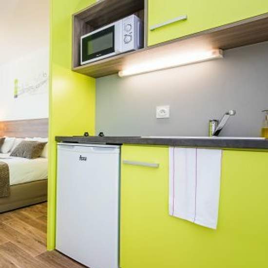 Located in a brand new residence, this apartment will seduce you. It is conveniently located at the doors of Grenoble: close to the University Grenoble Alpes, a few minutes by tram from the city of Grenoble and SNCF train station, and 25 minutes from ski resorts. You can enjoy the view of the mountains. Composed of a living room with 2 single beds (2 * 80 * 200) that you can combine to make a double bed, a kitchenette in the Hall and a bathroom with shower and toilet, the T1 is 23 m². It can accommodate 2 people. The kitchen has a microwave,...