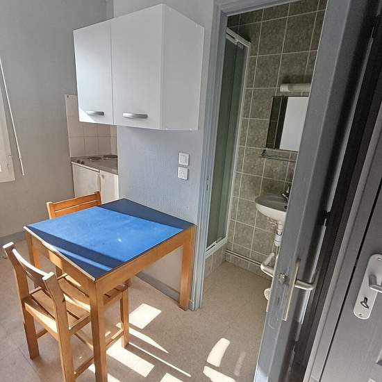 À louer en exclusivité, au 2ᵉ étage de l’immeuble situé au 41 rue de la Matte (angle boulevard de la Fraternité), le studio meublé n°28 de 12,70 m², lumineux et donnant sur la rue de la Matte, est fonctionnel et parfaitement adapté à une personne seule. Il comprend : un séjour avec kitchenette équipée (plaques de cuisson, réfrigérateur, meubles de rangement), un coin repas avec table et chaise, un canapé convertible, un placard intégré, une salle d’eau avec douche, lavabo et WC. Le logement est équipé de radiateurs électriques récents à flui...
