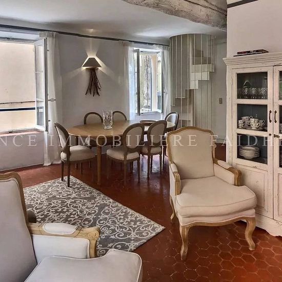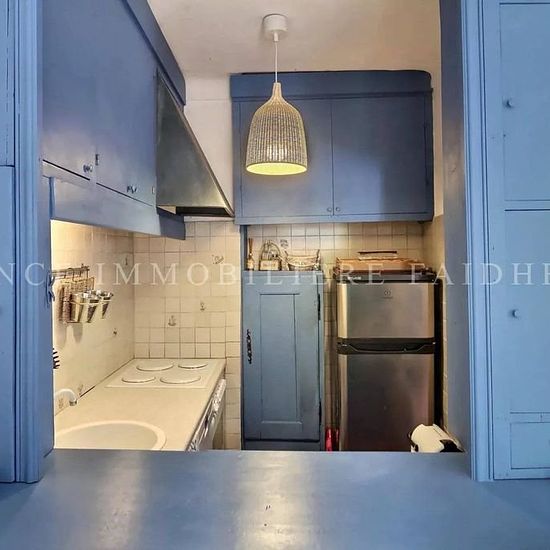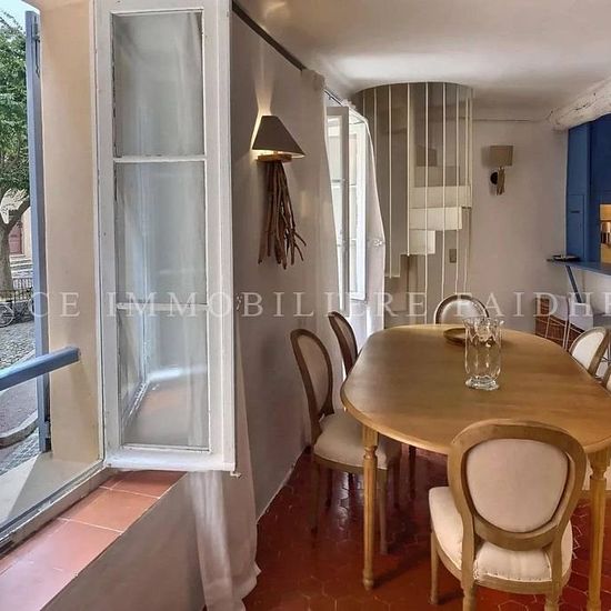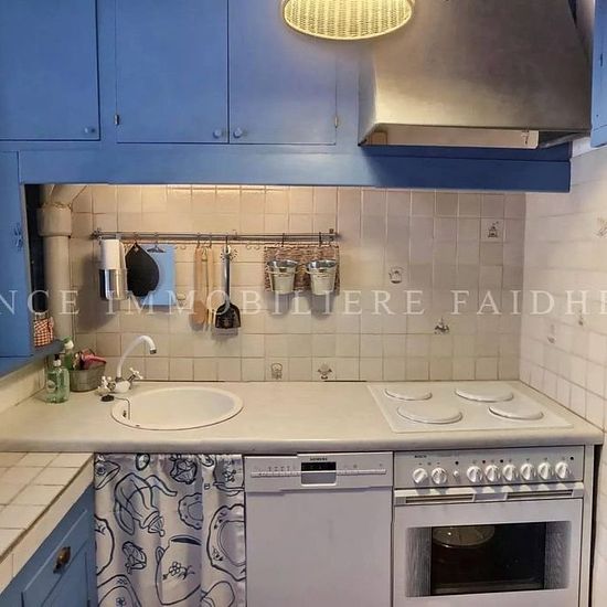 REF 12 Vieille ville, rue du Clocher, appartement sur 2 niveaux se composant de : 1 chambre avec lit en 160 1 salle de bain/toilette 1 chambre cabine avec lits superposés 1 salle de douche/toilette Salon/salle à manger avec TV Cuisine ouverte équipée Climatisation dans le salon et dans 1 chambre, coffer. Charges : linge et ménage 150€ et taxe de séjour 6,91€/jour/personne