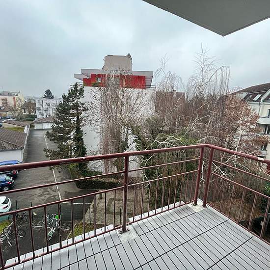 STRASBOURG NEUDORF~Chemin Fried, proche du tram et des commerces. Grand studio entièrement refait à neuf, d'environ 32 m² au 3 étage avec ascenseur. Le logement bénéficie d'une entrée avec placards, d'une belle pièce de vie rénovée avec balcon plein sud, d'une cuisine indépendante avec plaque et réfrigérateur, d'une salle d'eau neuve avec wc et d'une cave. Accès parking privatif à la copropriété, emplacements libres. Eau chaude et chauffage individuel électrique (radiateurs neufs). Disponible de suite Loyer hors charges : 575 euros Provision...