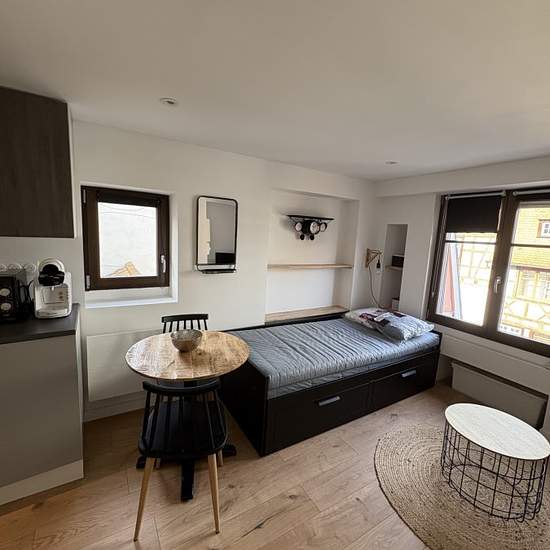 studio meublé - Krutenau. Quartier Krutenau, face à la Manufacture des tabacs, à louer beau studio entièrement meublé, très bon état, pièce principale avec kitchenette, salle de douche, toilettes séparés. Chauffage et eau individuels électrique. 3ème étage sans ascenseur. Disponible de suite.
