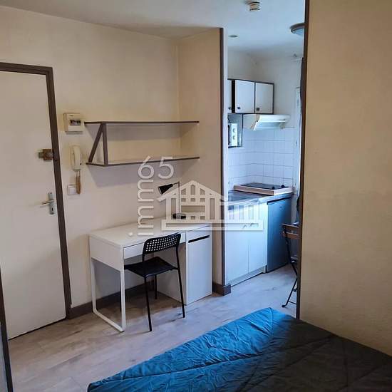 Au centre-ville de Tarbes, au 1er étage d'une petite résidence Studio meublé de13m2 en tout compris : eau, électricité, wifi. Kitchenette équipée, volets électriques, salle d'eau avec WC. Pièce à vivre avec grand placard et couchage. loyer 300 euros dont 90euros de charges incluses caution 300 euros Frais d'agence: 143 € (possibilité de les régler en 3 fois)