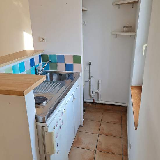 Au 2ème étage, joli studio comprenant une pièce principale avec poutres apparentes, un coin cuisine avec frigo top et plaques électriques, une salle d'eau avec WC. Loyer : 492 euros Charges : 38 euros Dépôt de garantie : 492 euros Honoraires : 299 euros.