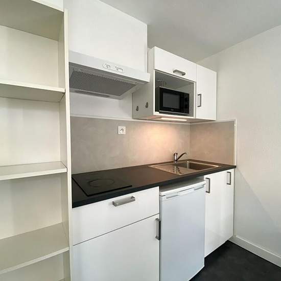 Toulouse Rangueil Appartement T1 meublé 17.80 m² Venez découvrir ce Studio meublé, en rez-de-chaussée, au calme, d'une résidence proche de la faculté. Atout : Une place de parking (aérienne) privative ! Vous profiterez d'une agréable pièce de vie, lumineuse, d'un coin cuisine ouvert, équipé et aménagée (plaques, hotte, frigo top et rangements), une salle d'eau, et un WC. Disponible le 18 / 12 !