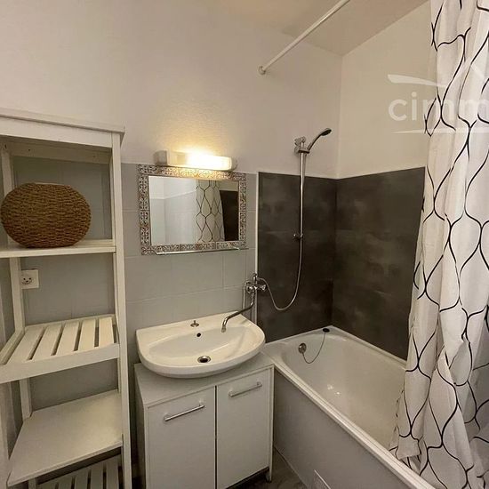 Studio 23 m² balcon Montjoyeux Dispo maintenant. Rue Charles de Foucauld, à Montjoyeux, studio meublé de 23 m² en très bon état au 1er étage avec ascenseur dans immeuble avec gardien. Il se compose d'une pièce principale avec balcon plein sud, d'une cuisine équipée, d'une salle de bains avec wc et machine à laver le linge. Beau balcon. Disponible 1er avril.