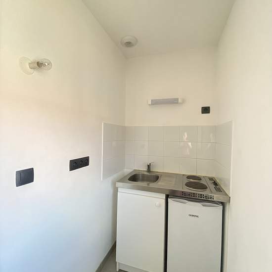PROCHE GARE - Un studio au 2ème étage avec ascenseur d'une résidence de standing, de 18,10 m2 habitables, comprenant : une pièce de vie avec placard et coin kitchenette ouverte, salle d'eau avec wc ainsi qu'une place de parking privative. Chauffage individuel gaz. CE : B. Loyer : 370 EUR/mois HC + 30 EUR de provision de charges mensuelles avec régularisation annuelle. Dépôt de garantie : 370 EUR. Honoraires d'agence à la charge du locataire : 199,10 EUR TTC dont 54,30 EUR TTC d'état des lieux. Libre