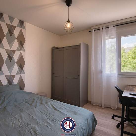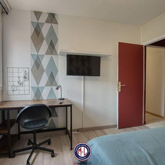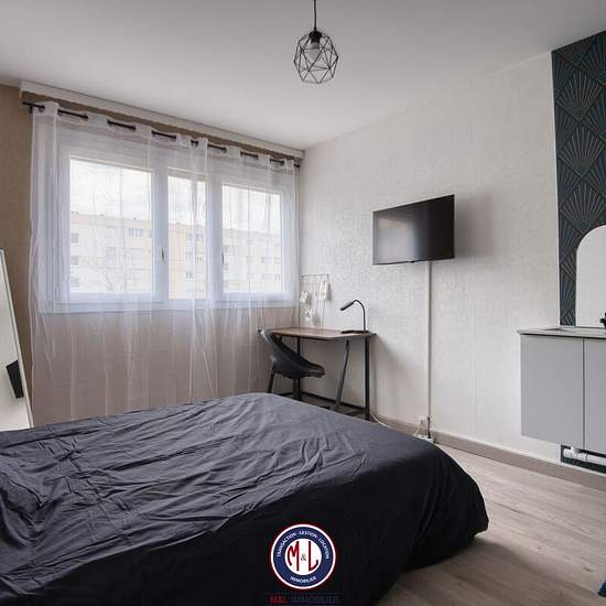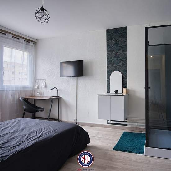 Situé au 2ème et dernier étage. chambre en collocation dans un appartement 5 pièces de 97m2 au total comprenant: -1 grand salon de 30m2 avec canapé, TV 4K (Netflix) -1 cuisine/salle à manger tout équipée avec four, micro ondes, lave vaisselle, machine à laver, frigo américain, plaque induction, hotte, petit électroménager -1 balcon aménagé -1 salle de bain avec douche, vasque, rangements -1 WC séparé chambres disponible : -Chambre N°3 avec douche et vasque PRIVEES :lit 140x190 avec oreiller, couette et parure de lit, TV, bureau+fauteuil, gra...