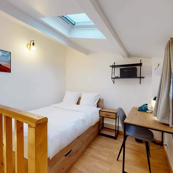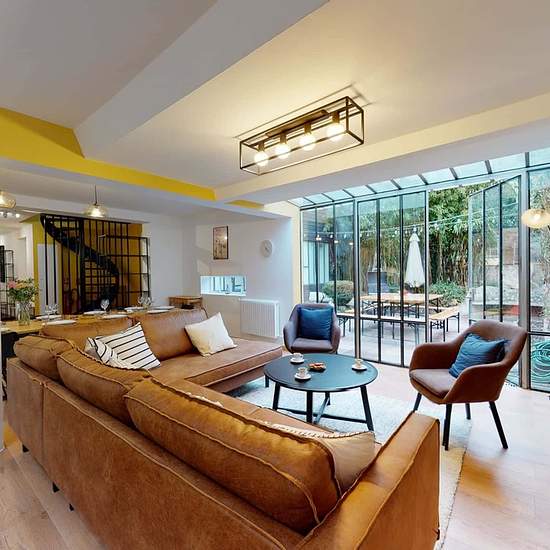 This comfy and minimalist room is perfect for one person. Enjoy quiet times to chill or work. Plus, you will have your own private bathroom : so take as much time as you want in the shower and sing all your favorite songs out loud. Discover our second home in Villejuif: PATTY! This beautiful modern-style house has been fully renovated and equipped, and has the advantage of being ideally located: only a 5-minute walk from the Line 7 metro station, enough to reach the 13th arrondissement of Paris in 15 minutes. The house is located in the city...